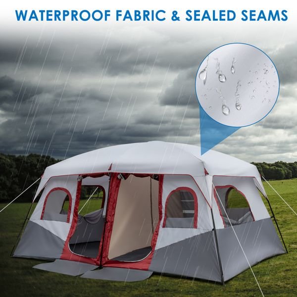 10 Person Family Cabin Tent, 2 Room Huge Tent with Storage Pockets for Camping Accessories