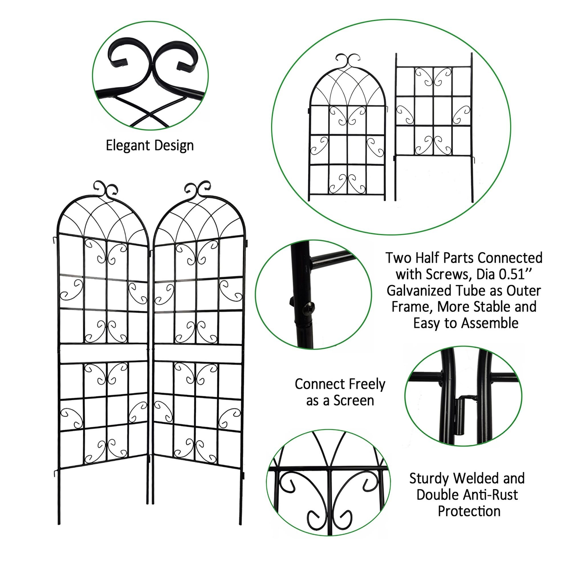 Multi-purpose: Great metal garden trellis for climbing plants, such as ivy vines, rose, morning glory, clematis, jasmine, grape, blackberry, cucumber, beans, peas, etc.