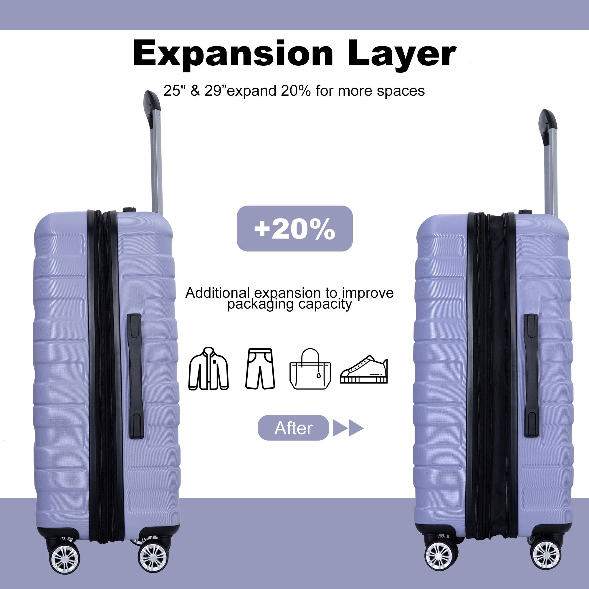 3 Piece Luggage Sets PC Lightweight & Durable Expandable Suitcase with Two Hooks, Double Spinner Wheels, TSA Lock, (21/25/29) Light Purple