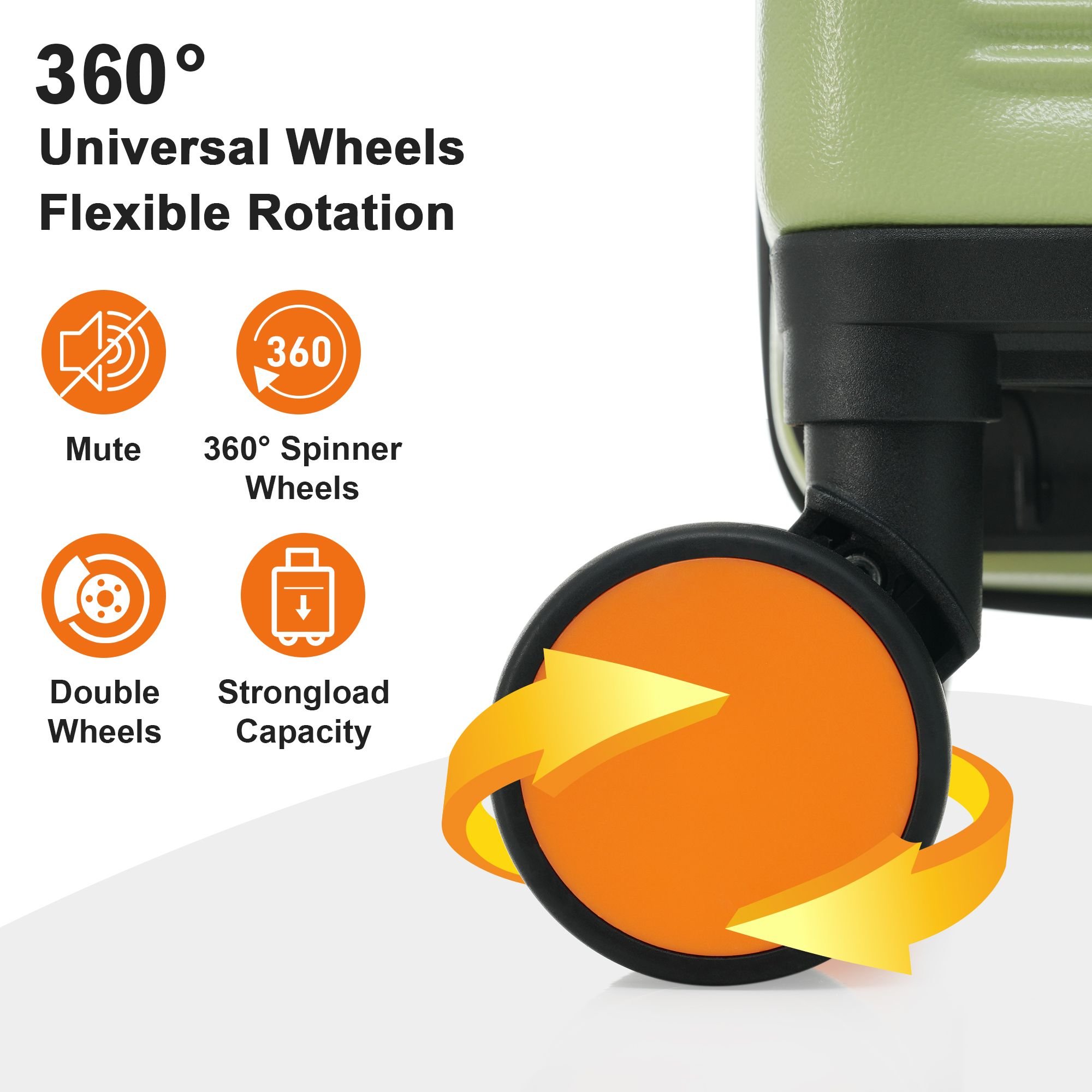 Lightweight 100% ABS material, smooth 360° spinner wheels and carrying top and side handles make your trips more easily.