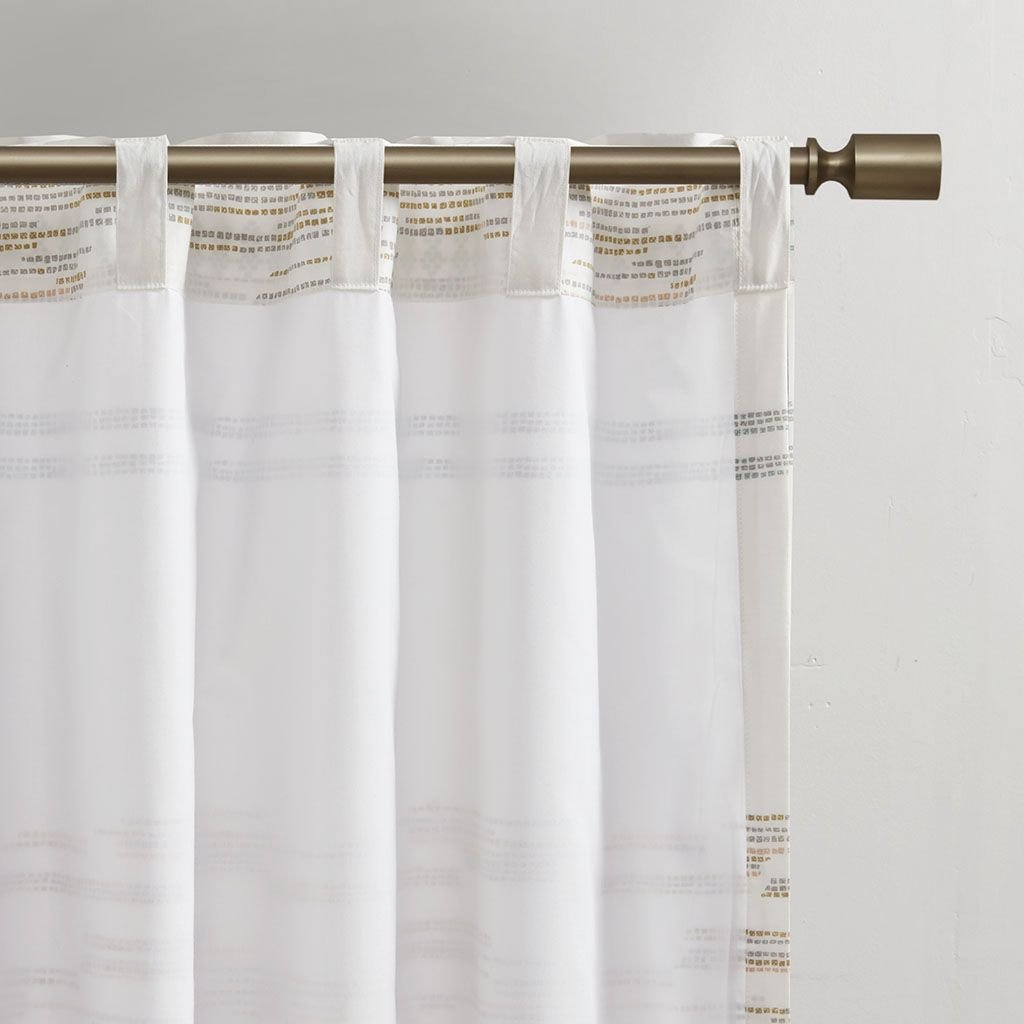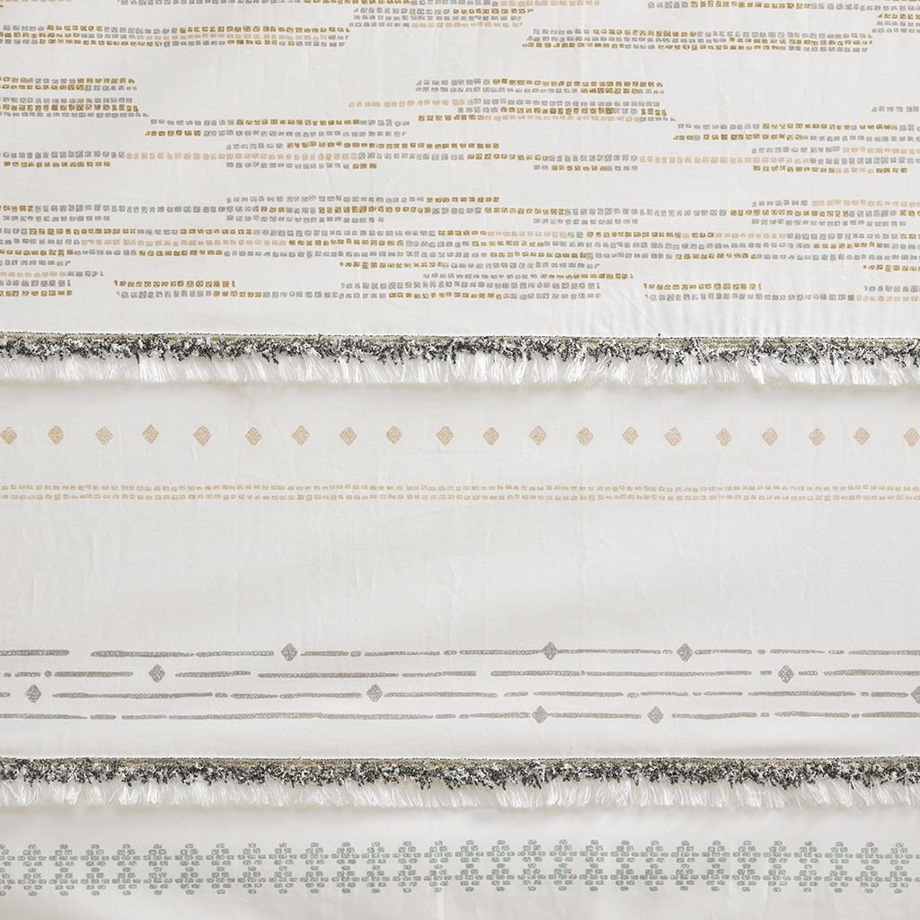 Elevate your home decor with the modern boho style of our INK+IVY Nea Cotton Printed Tassel Trim and Lined Window Curtain. This off white/gray cotton window panel features fresh printed stripes and tassel detailing creating a rich artisanal texture, for a shabby chic look and feel. A lightweight white cotton lining on the reverse softly filters light, while providing better drapability and added privacy. Each panel is finished with a rod pocket top for easy hanging, and back tabs for a more clean and tailored finish. This window panel is sold as a single and 2 window panels must be purchased to cover any standard size window. Complete the look with coordinating bedding sets and bath decor, available and sold separately.