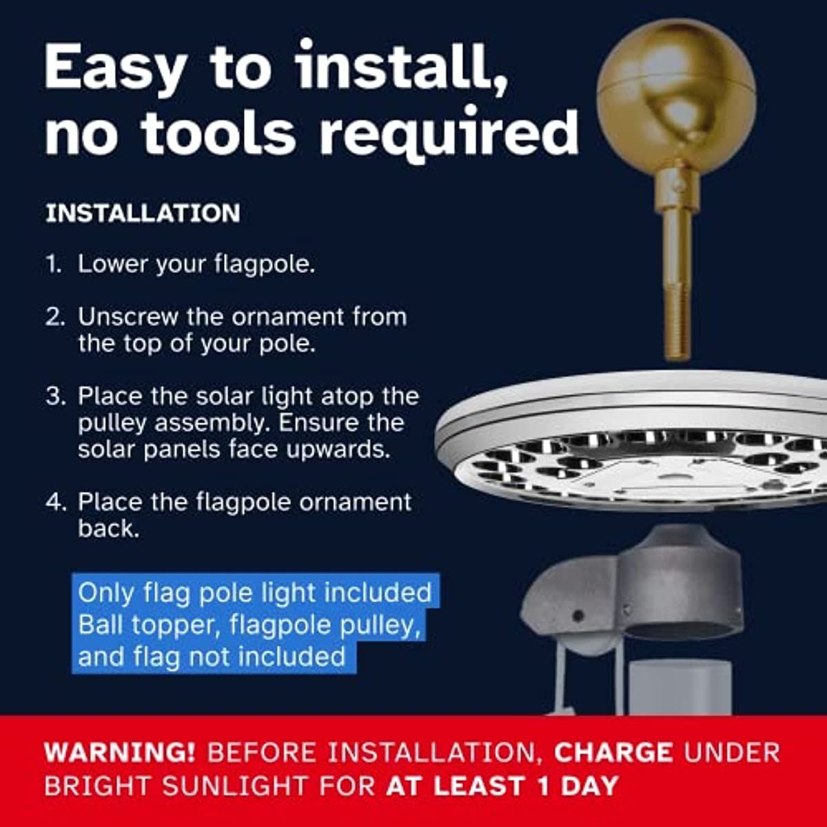U.S. Flag Code Compliant - Light up the Stars & Stripes with brilliant illumination throughout the night with our 1300 Lumen solar flag pole light! Featuring 5x the brightness and intensity of comparable solar flag pole lights outdoor dusk to dawn options.