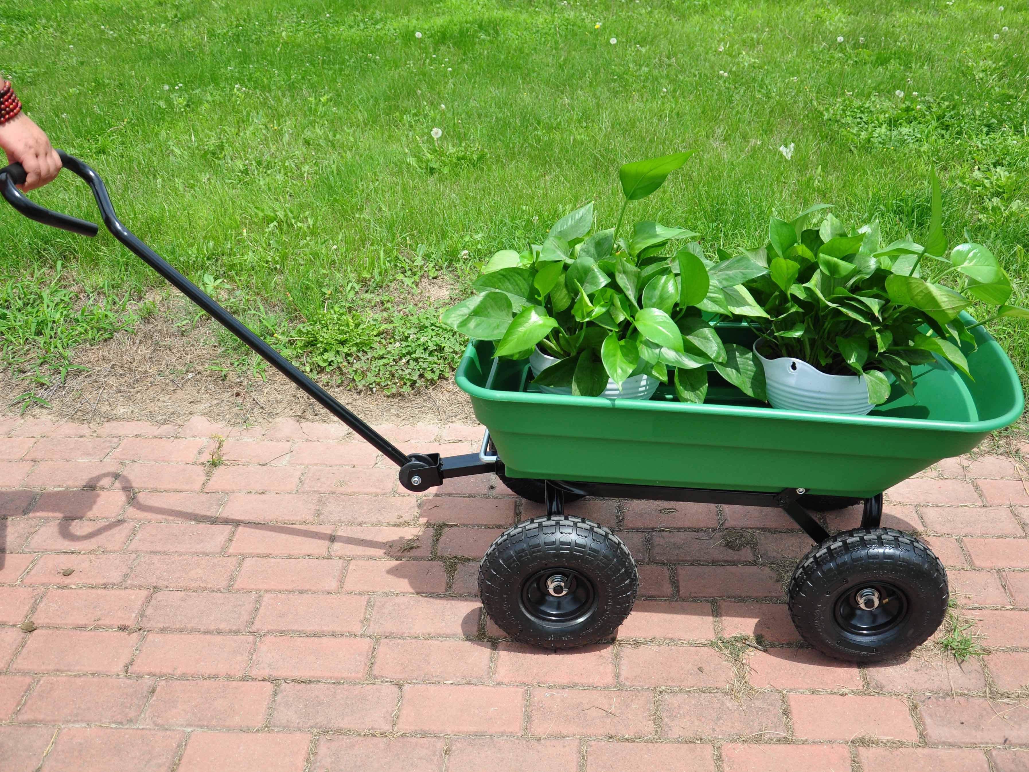 [180 Degree Turn] Garden Dump Cart handle has a 180 degree turn range that makes transportation quick and easy. It is long and flexible enough to adjust angle as needed.