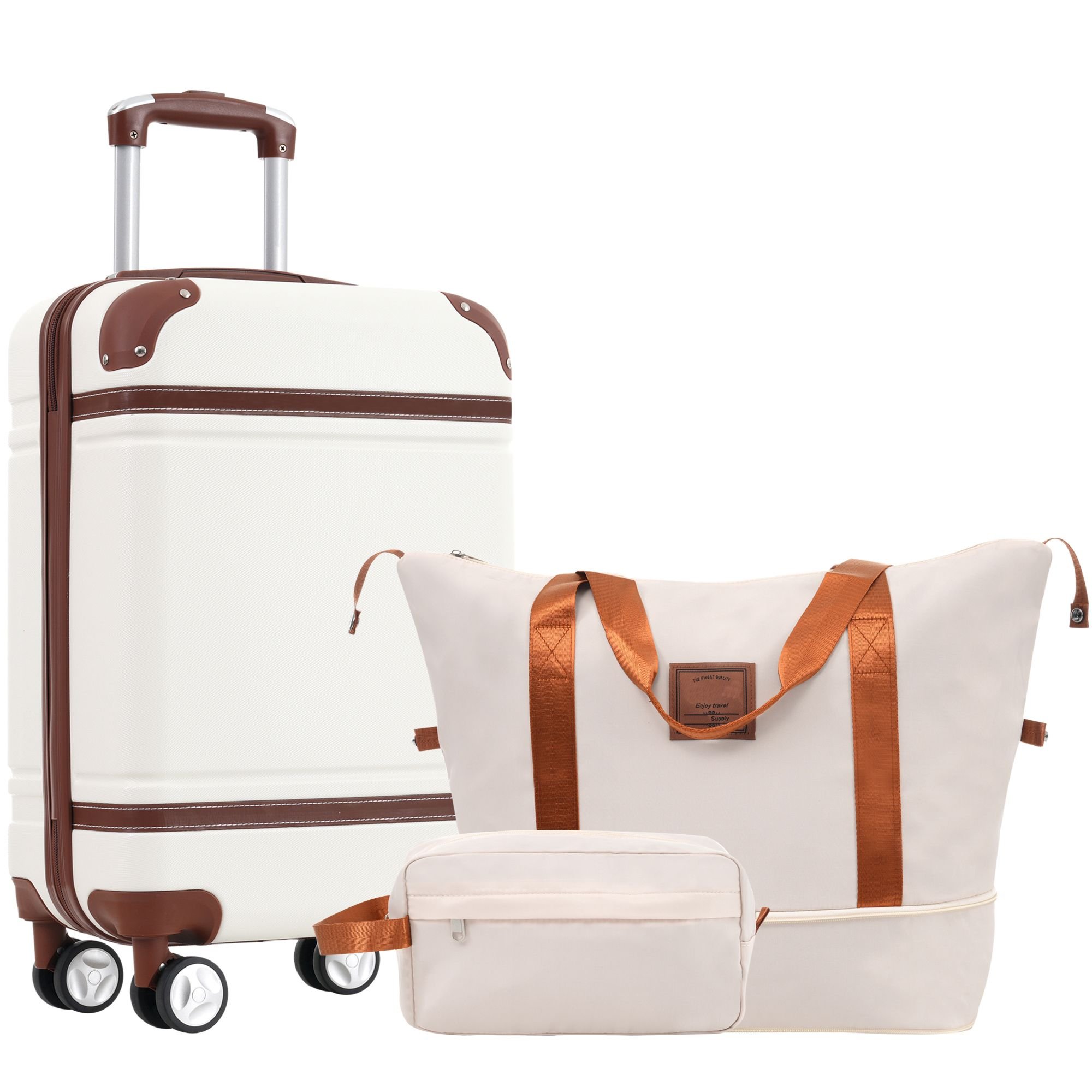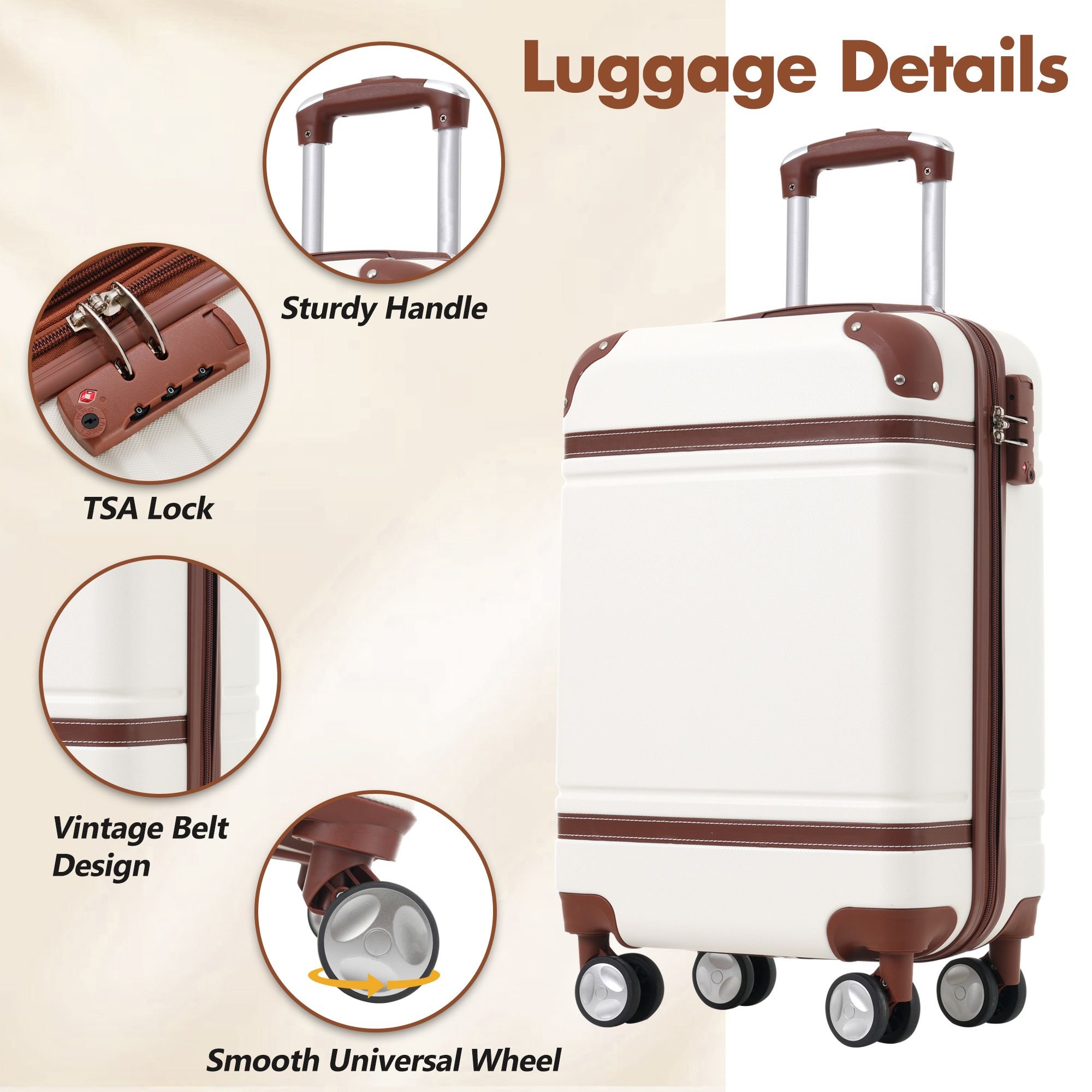 Home > Hardshell Luggage Sets with Bags Carry-on Suitcase Double Spinner Wheels with TSA Lock ,Single Vintage Luggage 20 IN,White