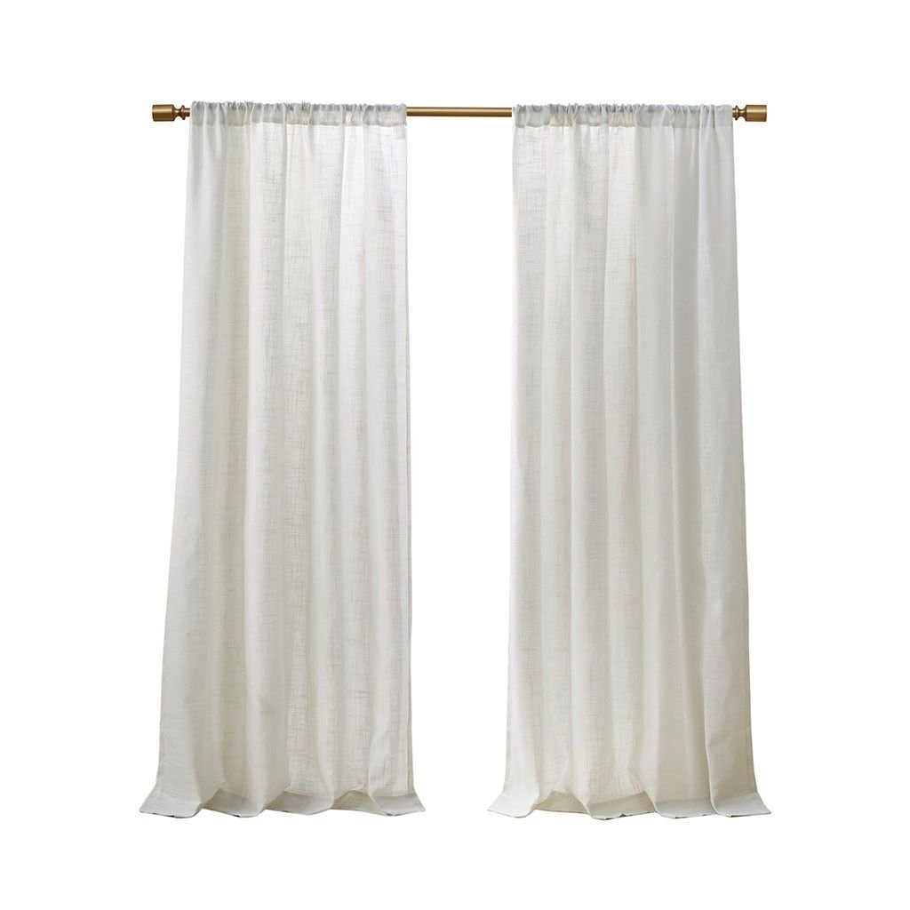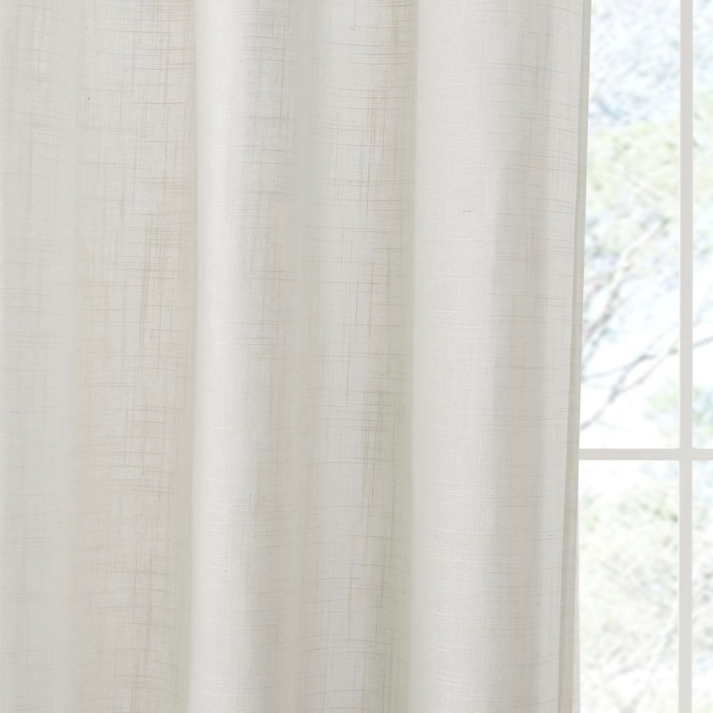 Casual and stylish, the Madison Park Kyler Linen Blend Light Filtering Window Panel Pair is an easy addition to freshen up any space. This window panel pair features a beautifully textured linen blend fabric in a soft white tone creating a natural look and feel; while the lightweight fabric lets the right amount of light into your home for a bright, yet soft and airy touch. A rod pocket top makes these curtains easy to hang, open, and close throughout the day while the back tab option provides a more tailored and clean update; both top finishes fit up to a 3" diameter rod. Machine washable for easy care, this light filtering window panel pair is also OEKO-TEX certified, meaning it does not contain any harmful substances or chemicals to ensure quality comfort and wellness. Each panel comes as a pair for additional value that's ready to decorate your home; Complete the look with coordinating roman shades, available and sold separately.