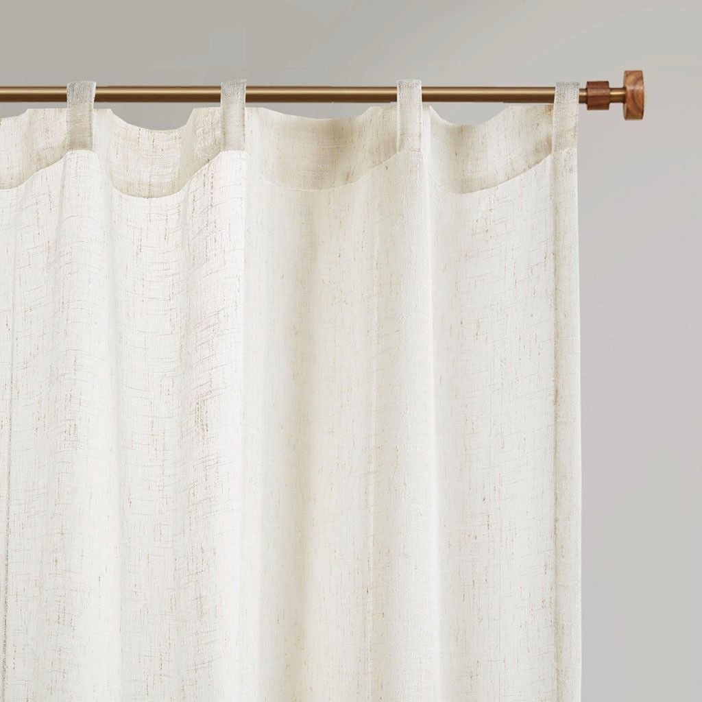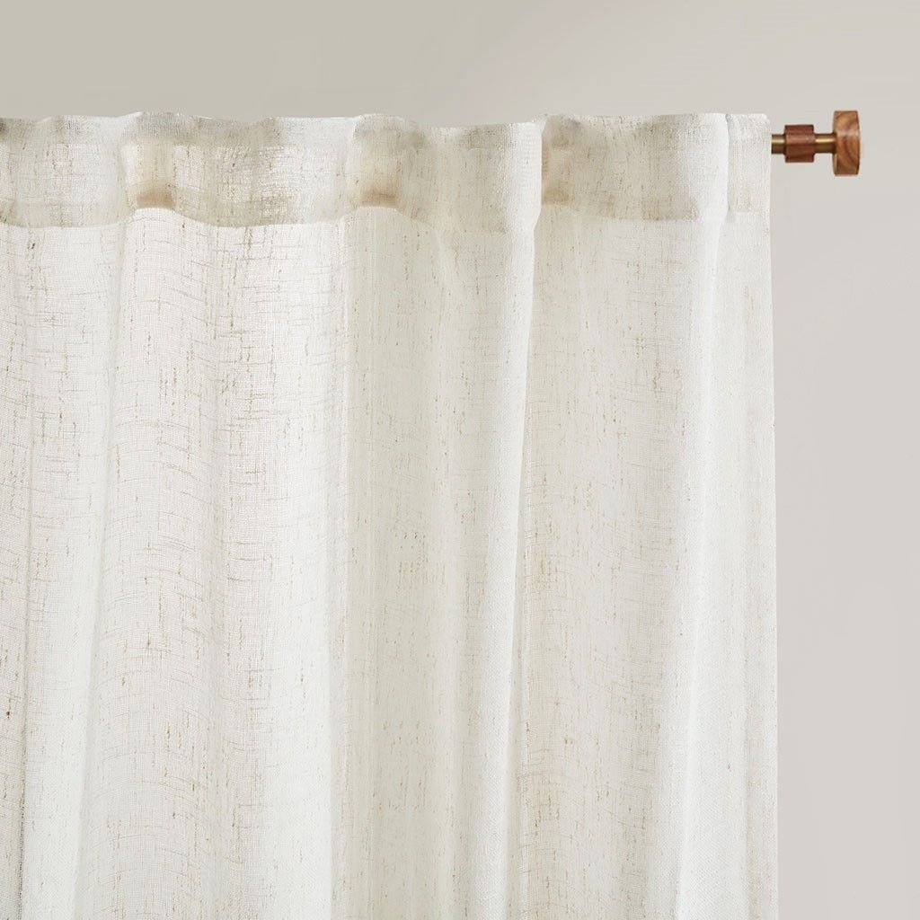 Create a soft and graceful allure in your home with the Madison Park Aida Yarn Dye Sheer Window Panel Pair. This sheer panel pair features a beautiful woven linen texture to create an airy look that drapes softly from your window; while handcrafted detailing creates a beautiful tonal color block pattern, giving each sheer panel a stylish and Boho-inspired touch. A rod pocket top finish makes these panels easy to hang, or hang on back tabs for a more tailored look; each top finish fits up to a 1.25" diameter rod. Machine washable for easy care; this sheer window panel pair is also OEKO-TEX certified, meaning it does not contain any harmful substances or chemicals to ensure quality comfort and wellness.